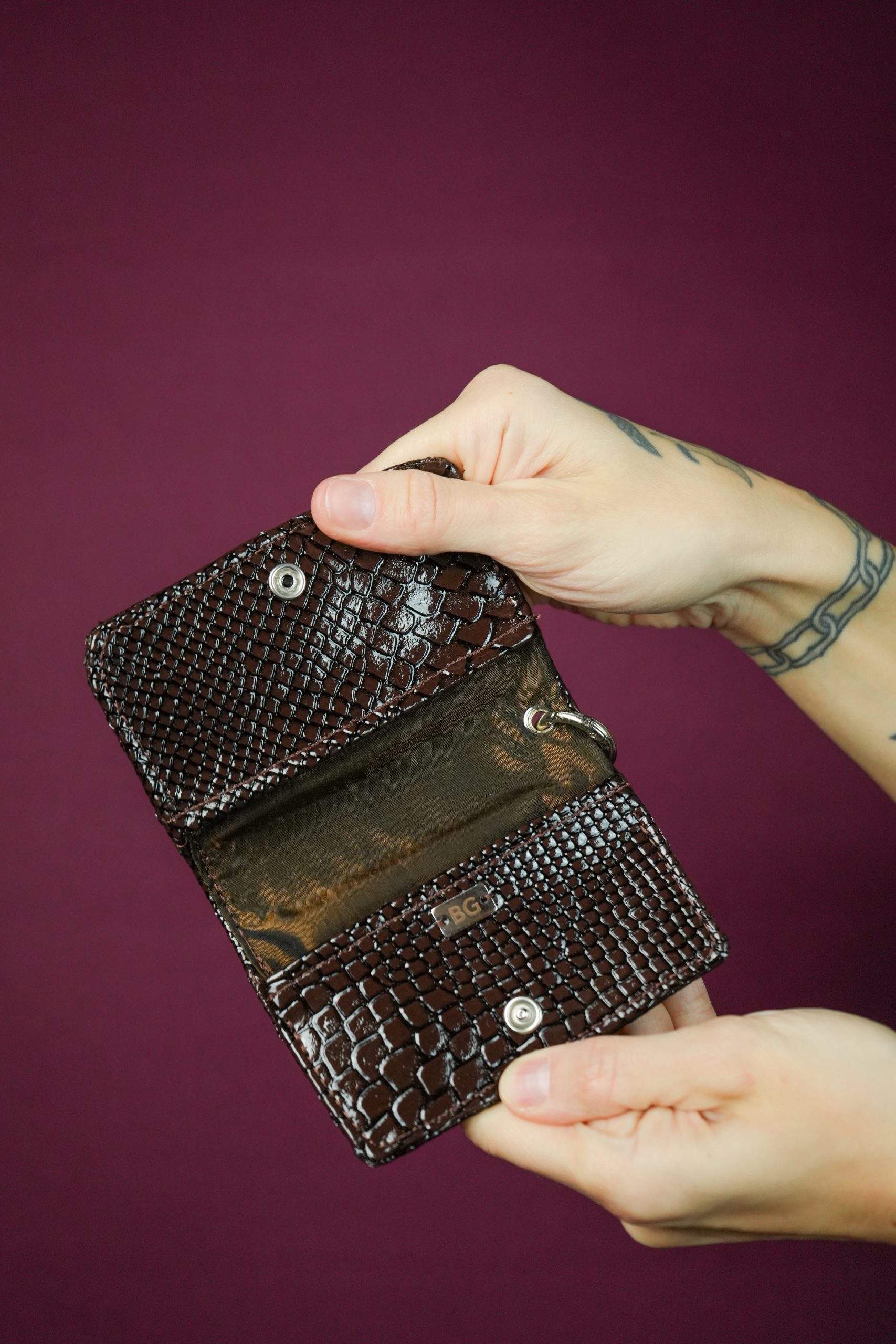 Introducing our Upcycled Mini Wallet, thoughtfully crafted from high-quality leftover materials to reduce waste and create something beautiful and long-lasting. This compact piece features a luxurious croc-embossed exterior, giving it the elegant look of premium leather while being an environmentally conscious choice.