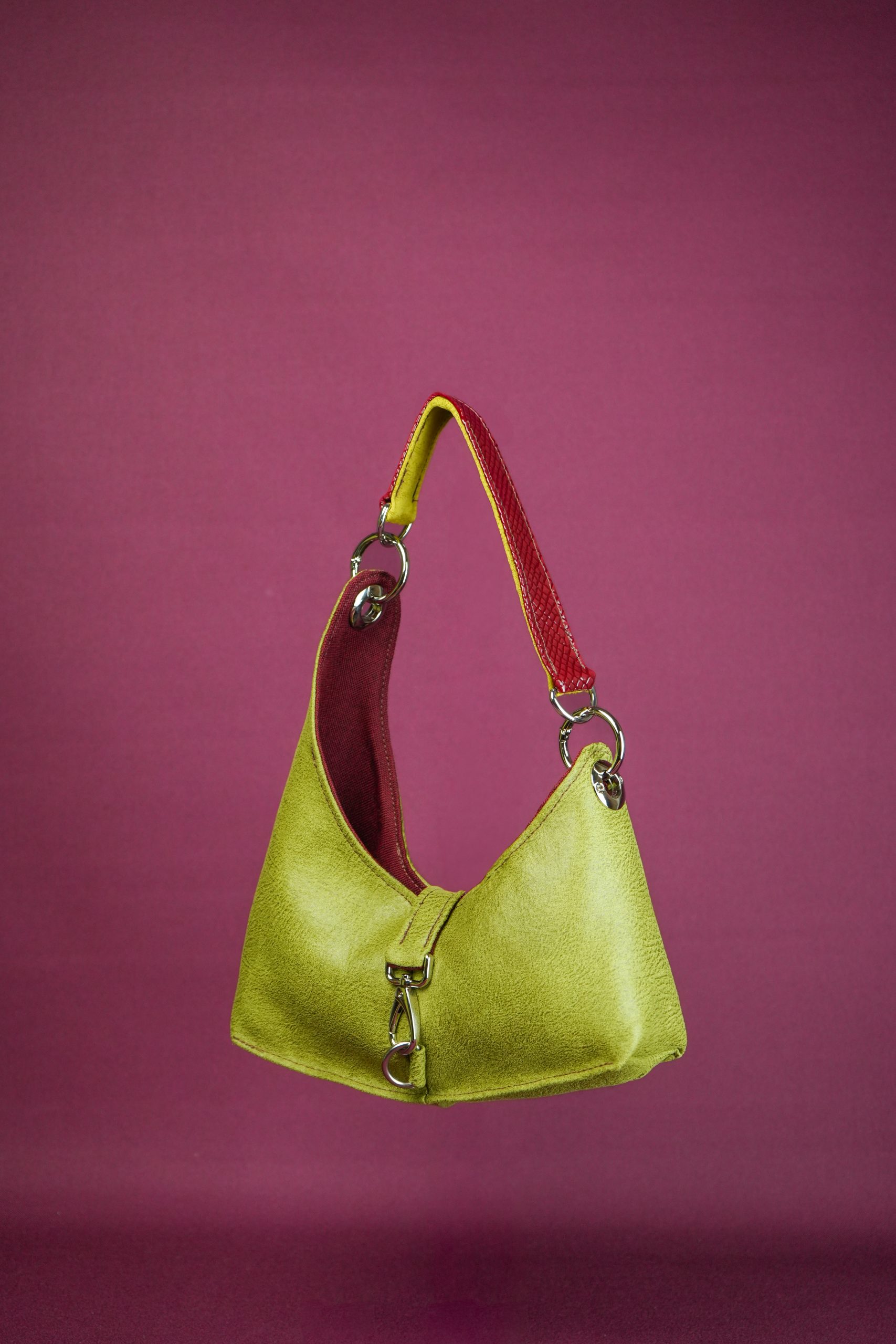 Each bag is equipped with a metal ring. Our reversible bag offers versatility and functionality for every occasion.