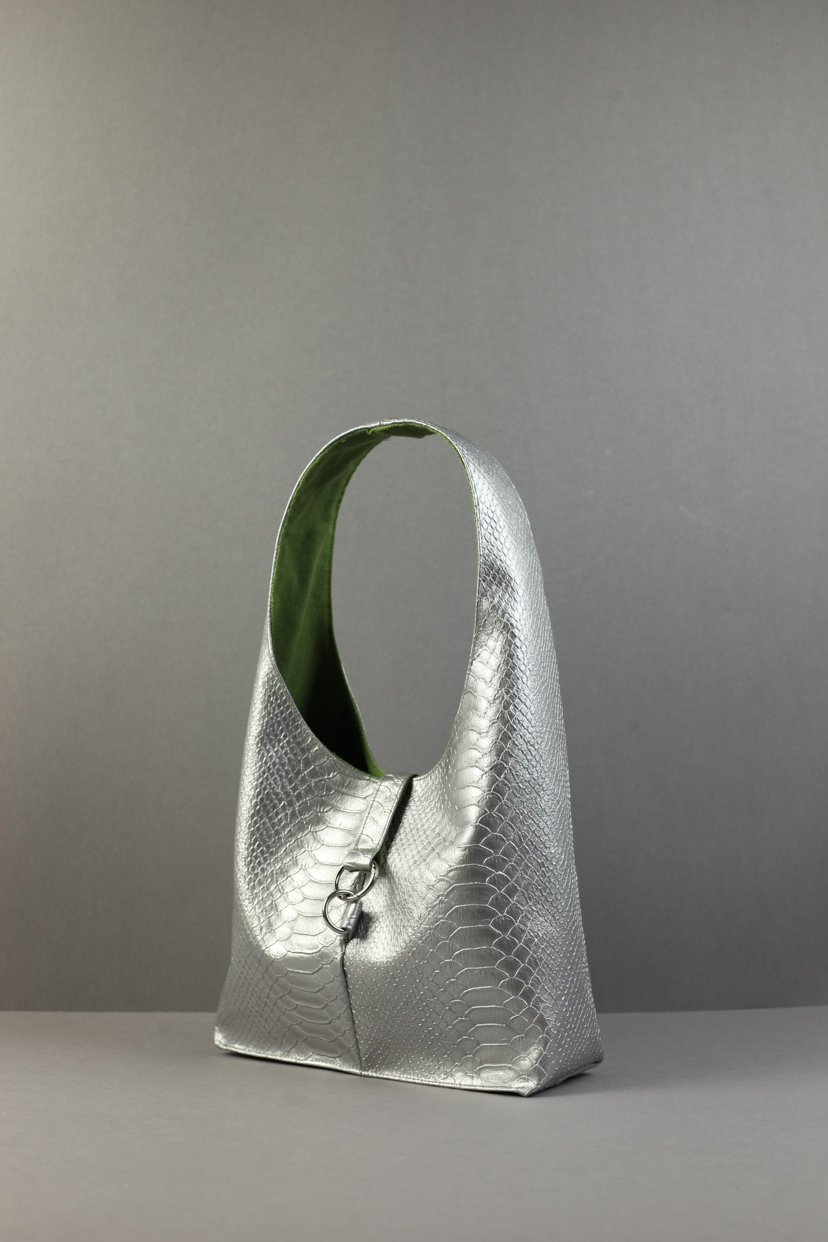 Introducing our versatile Reversible Bag, crafted to adapt to your dynamic style. One side showcases a luxurious vegan leather with a striking silver snake pattern, adding an element of sophistication to any outfit. On the other side, you’ll find national linen imported from Argentina, offering a touch of elegance and natural beauty. Equipped with a metal ring and keychain for added convenience, this bag is available in both small and large sizes. Experience the perfect blend of versatility and functionality for every occasion.