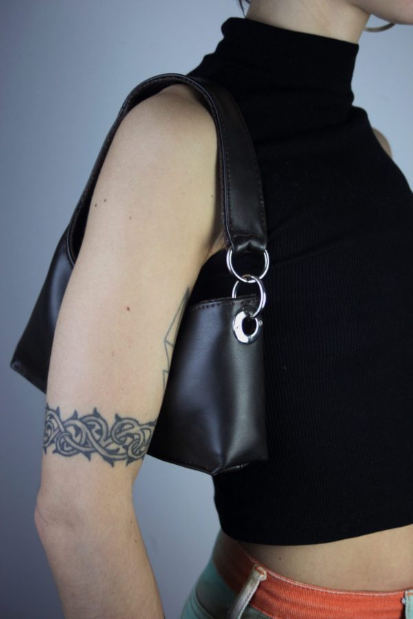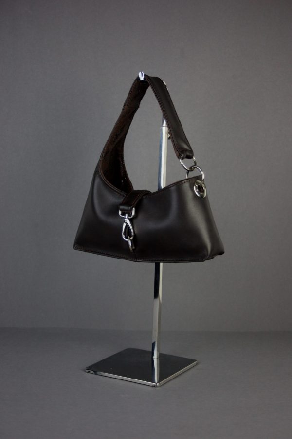 Versatile Reversible Bag, designed to suit your ever-changing style needs. On one side, elevate your look with durable vegan leather featuring a knotted diamond pattern in complementary chocolate tones, adding a touch of sophistication to any ensemble.